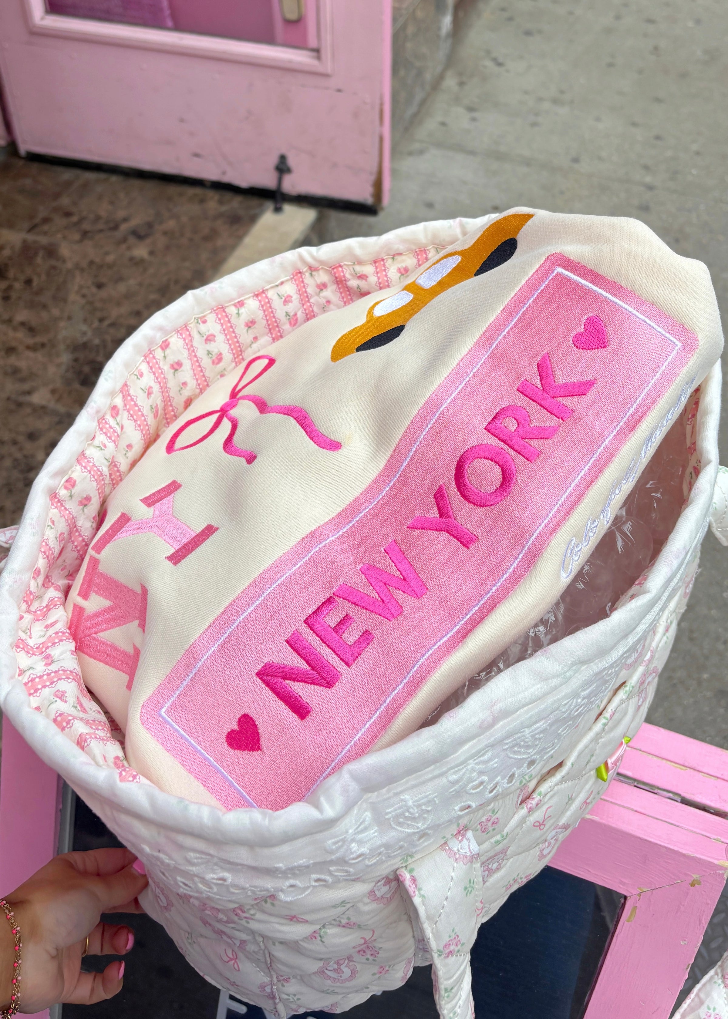 Tote bag with pink coquette pattern